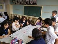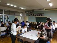 放課後の研究会でも、先生方がグループに分かれて熱心に協議しました。都賀中学校の先生方も参加して、教職員みんなで作り上げた内容の濃い時間となりました。