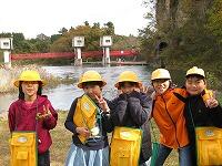 まずはじめに、西岩崎頭首工を見学しました。那珂川から水を取り入れる場所を確認しました。