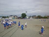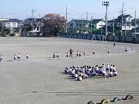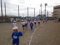 3時間目には、6年生が学年練習を行いました。さすが!高学年は、トラック2周 → 大回り4周