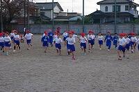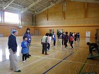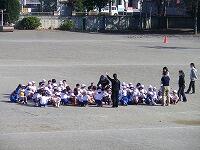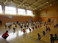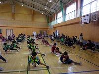 学年の混ざったチームに分かれて、まずは入念に準備運動!