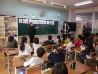 先週21日には、1・2・3年生のお話会がありましたが、今日の5時間目には、間中一代さんをお招きして4・5・6・年生の『民話