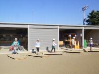 。体育小屋の前の手作りジャンピングボード