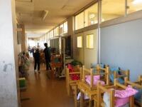 をします。今日はワックスがけの1日目、各学年一教室の児童机・いす、配膳台やテレビなど、すべてを廊下に運び出しました。