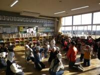 、「おはようございます!」とあいさつする子どもたちの息も、白く見えました。今日の表彰集会は、体育館もマイナスの気温だったことと児童の体調を考慮して、表彰会場を会議室にして、放送