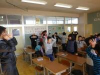 Christmas!!」のかけ声で、ビシャカ先生や荒川先生と同じジェスチャーになってしまったら、残念アウト!この後、ジャンケンゲームをしたり、すてきなクリスマスカードを作ったり、たっぷりと外国語活動を行いました。「Merry