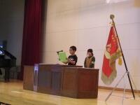 校長先生のお話は、苦手なことにも諦めないで「チャレンジ」・「努力」することの大切さと、2学期に各学年ががんばって「成長