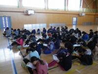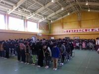 が体育館に集合して練習を行いました。音を立てないように立ったり、全体で「礼」をそろえたり、集中して練習