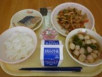 メニュー』で、「ごはん・牛乳・鶏肉のねぎ味噌焼き・磯香あえ・にら玉汁・お祝い