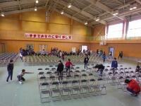にいすを並べていきます。並べ終わったところから、ぞうきんできれいに拭き掃除もしました。5年生と先生方の協力で、立派な卒業式の会場ができあがりました。