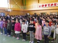 校長先生の話の後、校歌♫も元気よく歌えました。修了式終了後には、児童指導の川島先生から、春休み