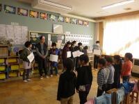 授与は各学年ごとに学級代表児童に渡しました。学年全体で「起立」「はい!」元気な返事