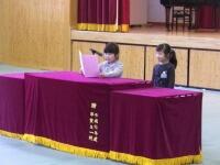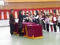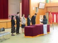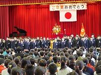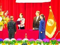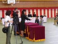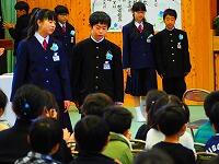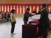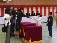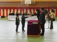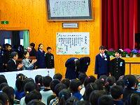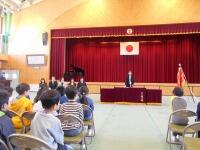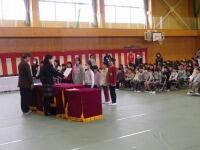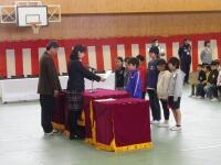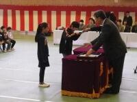授与は各学年ごとに学級代表児童に渡しました。学年全体で「起立」「はい!」元気な返事