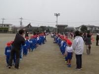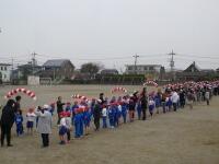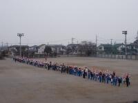 今日の集会タイムは、校庭で卒業生のお見送りの隊形を確認しました。