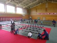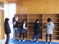 を行いました。体育館入り口の下駄箱を拭いて、いすの並びを丁寧に整えて、仕上げに拭きます。