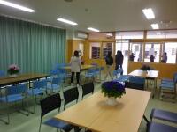 彩りを考えて花を並べて、6年生の教室や来賓控え室も飾り付けました。