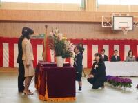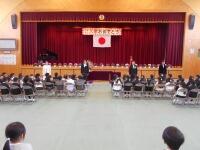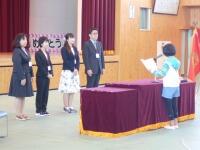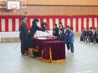 起立することができました。校長先生のお話、来賓のPTA会長さんのお話に続いて、代表の1年生に教科書を渡しました。がんばってお勉強