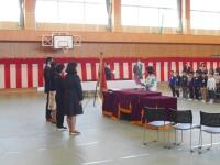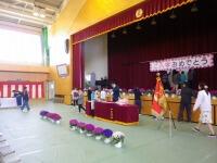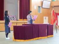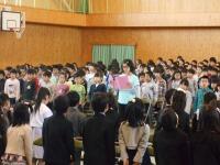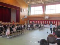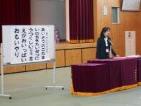 新任式では4名の先生方をお迎えし、6年生の代表児童の『お迎えのことば』で、合戦場小学校