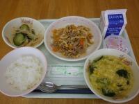 2~6年生のみなさんは、今日から給食がスタートしました。今日の献立は、「ごはん・牛乳・ビビンバ丼の具・とうもろこしスープ・キムチあえ・さくらゼリー」です。