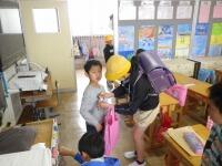 1年生の教室では、、、6年生が朝の準備のお手伝い