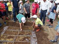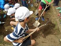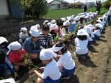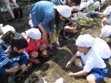子どもたちは初めての米作りに興味津々で、手塚さんの話をよく聞き、友達と声を掛け合い、協力・分担しながら、取り組むことができました。