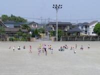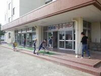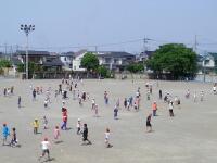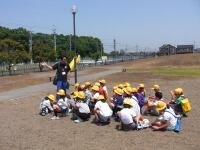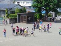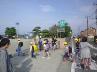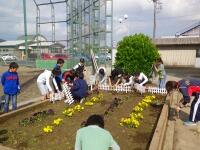 )で行っています。1年生は連休明けの7日から『なかよし班』の仲間入りをするので、この時期の清掃は校庭の石拾い