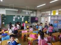 各教室では、机を寄せて、子どもたちが楽しみに待っていました。