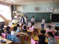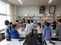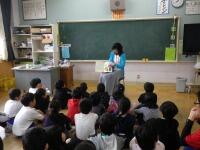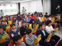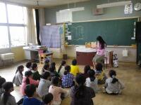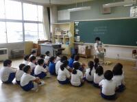 お話に子どもたちも集中5年総合 米づくり 其の一(種もみ植え)