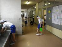 清掃終了の放送が流れて、片付けができたら、廊下に整列します。