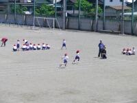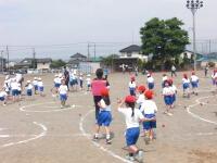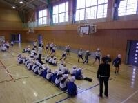 体操の隊形に広がることと、元の位置に集まることを、重点的に練習しました。「休め」の姿勢がとてもよい