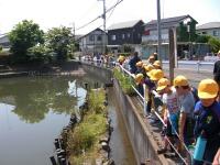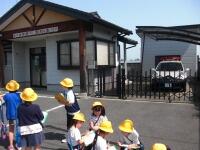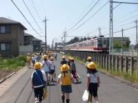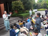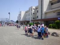 体育館に集合して、探検の約束を確認したら、いよいよ出発です。「生活科の勉強