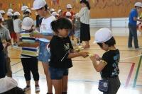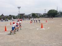 を盛り上げ、審判係が着順ごとに児童を誘導し、賞品係が正確に賞