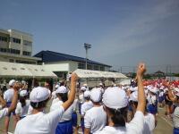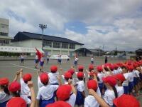 今日の集会タイムは、応援の練習。「大きな声で応援