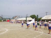 』です。「応援合戦の手順が分かり、規律ある態度で臨むことができる」と「応援のかけ声や応援歌の練習では大きな声を出すことができる」のめあてで、一生懸命に練習することができました。