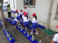 「先生~。見て見て~♪」「私のあさがお~。」「ぼくのはこっち~。」