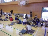 体育館では、会場・招集・賞品係のみなさんが、パイプいすのテープを貼り替えて