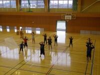体操の隊形に広がることと、元の位置に集まることを、重点的に練習しました。「休め」の姿勢がとてもよい