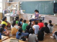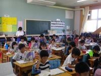 合戦場小学校では、地域の老人会のみなさんとの交流