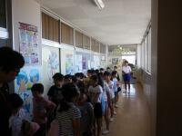 を行います。今朝はさっそく、昇降口で