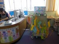 を貼ったり、図書室への移動を支援
