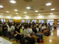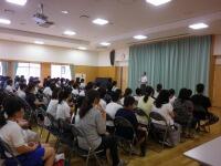 はじめに、多目的ホールで、校長先生のお話や部活動担当の先生の説明