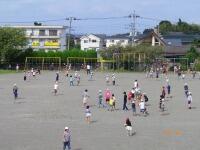今日の校庭は、全校生と先生方がそろっての『なかよし班遊び