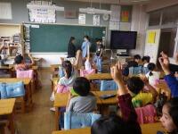 栃木市では、幼稚園・保育園・小学校の先生方による『幼保小交流』研修を行っています。今日は、平川幼稚園・年長組の堀田先生が、合戦場小学校1年生の教室で一日研修を行いました。