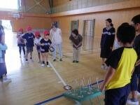 」今日は3年生が、下新田老人会のみなさんとのふれあい交流で『輪投げ