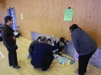 を入れましたが、児童は指示がある前に自主的に机の下にもぐり、頭・体を守りながら、静かに