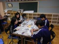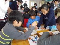 』のお店を担当することになりました。今日は、当日に向けて、合戦場小の先輩である中学生が、小学校にバルーンアート等の作り方を教えに来てくれました。