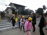 さすが中学生の元気なあいさつをお手本に、小学生も一緒に「おはようございます!」のあいさつを交わします。1年生