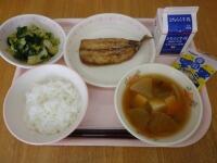 メニュー』で、「ごはん・牛乳・いわしのかばやき・いなか汁・おひたし・福豆」でした。