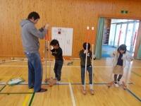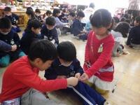 「はい。どうぞ。」「押さえていてあげるね。」1年生も優しいお兄さん・お姉さんぶり