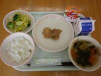 メニュー』で「ごはん・牛乳・とり肉のねぎみそ焼き・ゆばのすまし汁・ゆで野菜サラダ・アセロラゼリー」の献立でした。