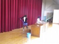 は、いすの間隔もしっかりと空けて並べてくれました。ステージ上も、演台を拭いてきれいに掃除しました。